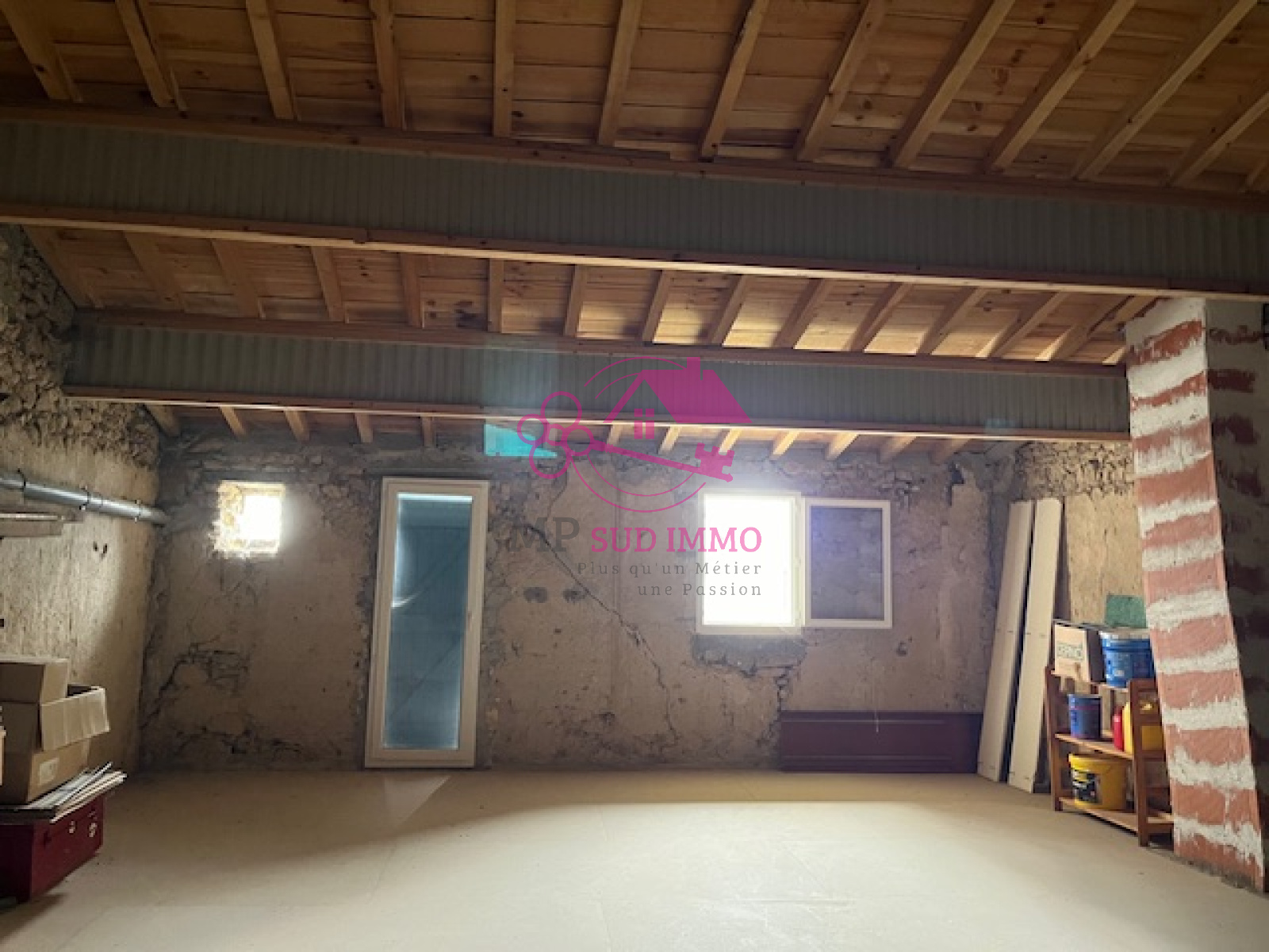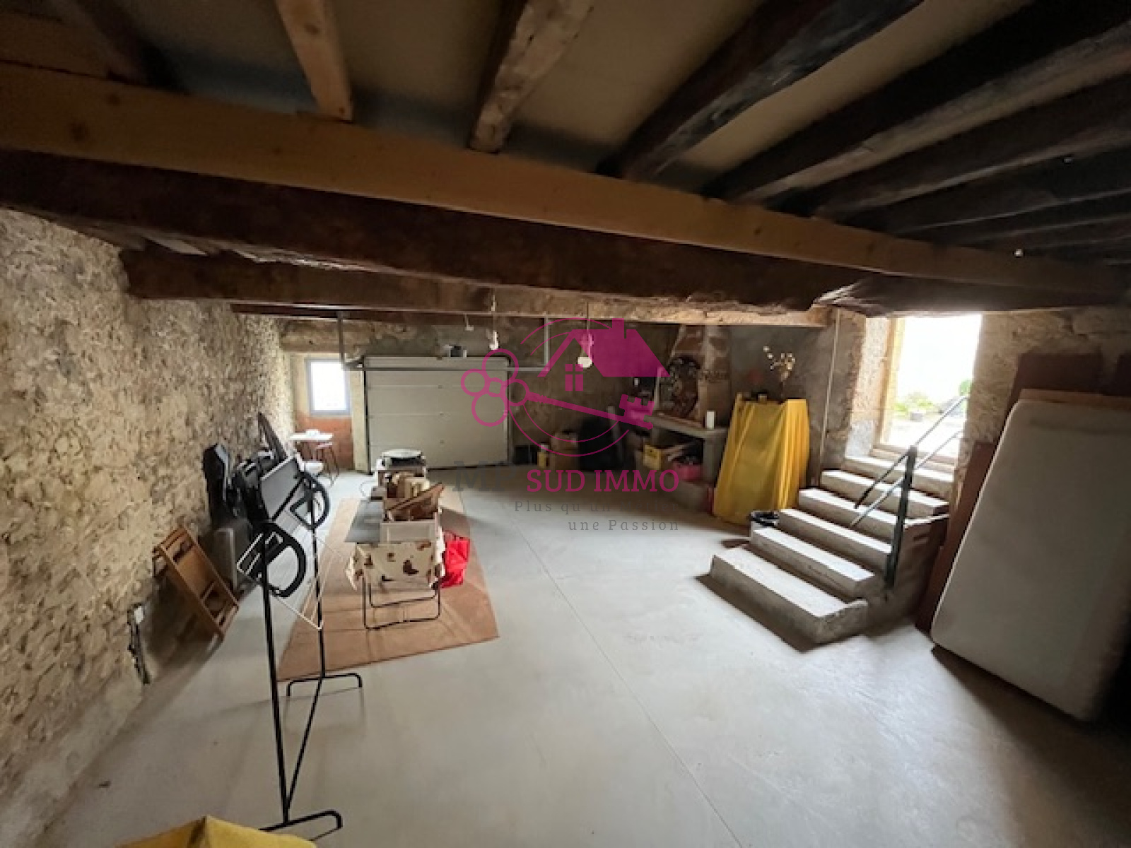 Cette maison possède l'énorme avantage d'avoir un grand garage de 60 M² au sol avec un étage de même surface entièrement aménageable comprenant déjà deux fenêtres en double vitrage.