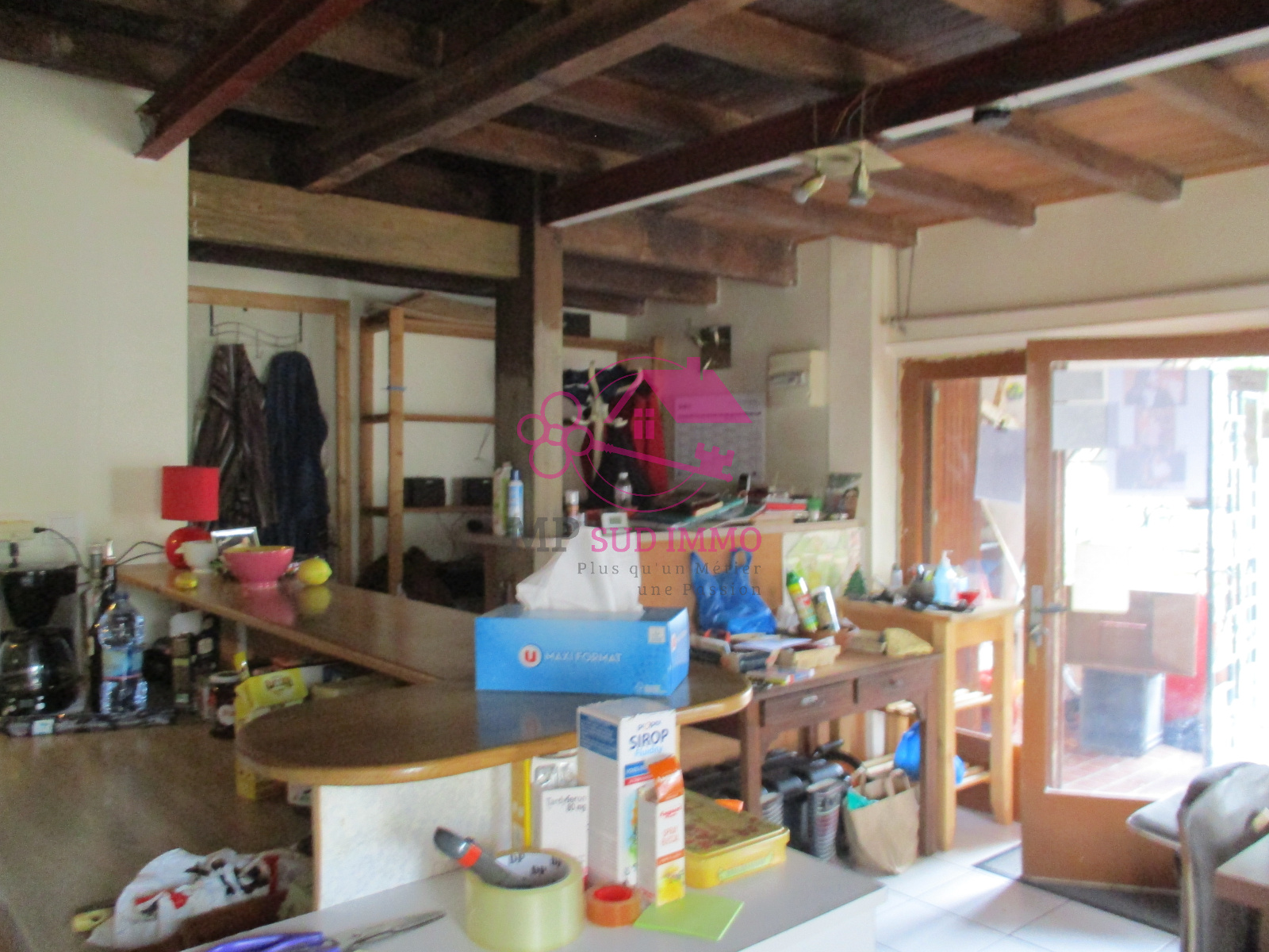 L'étage dispose d'une petite terrasse de 6 m², un séjour avec kitchenette,une chambre, une salle d'eau avec wc.
